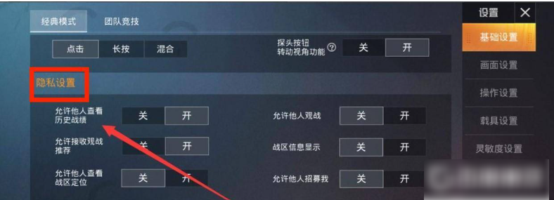 掌上和平精英怎么隐藏战绩 掌上和平精英隐藏战绩方法介绍1、在游戏主界面点击设置选项。2、打开设置界面选择基础设置。3、然后在下方找到隐私设置版块。4、在这里可以去设置关闭允许他人查看历史战绩。