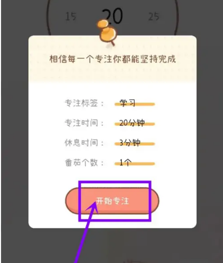 点击“开始专注”按钮,即可设置倒计时间。