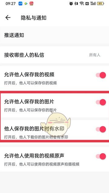 3.进入此页面后,点击关闭【允许他人保存我的图片】。
