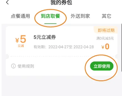 1.点击我的进入德克士主页选择我的点击进入2.点击我的卷包进入我的点击我的卷包进入3.点击立即使用进入我的卷包找到到店取餐点击立即使用即可