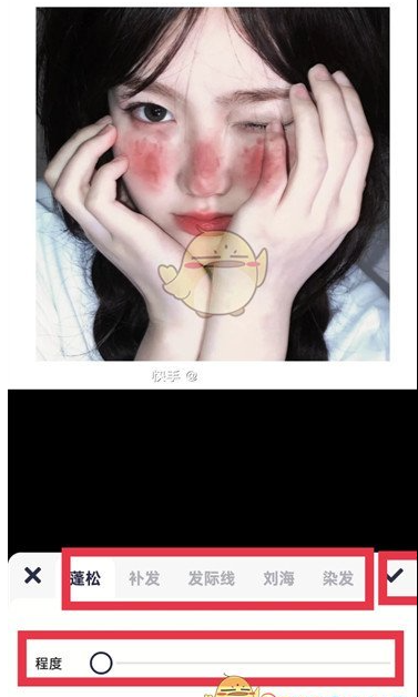 4.最后,在美发的功能区,你会看到几个可以根据自己的需要进行调整、编辑和设置的功能。完成所有设置后,单击[复选标记]图标。