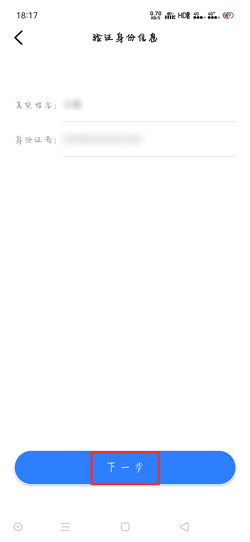 3.进入之前,需要先验证身份信息,确保显示的身份信息无误,点击【下一步】;