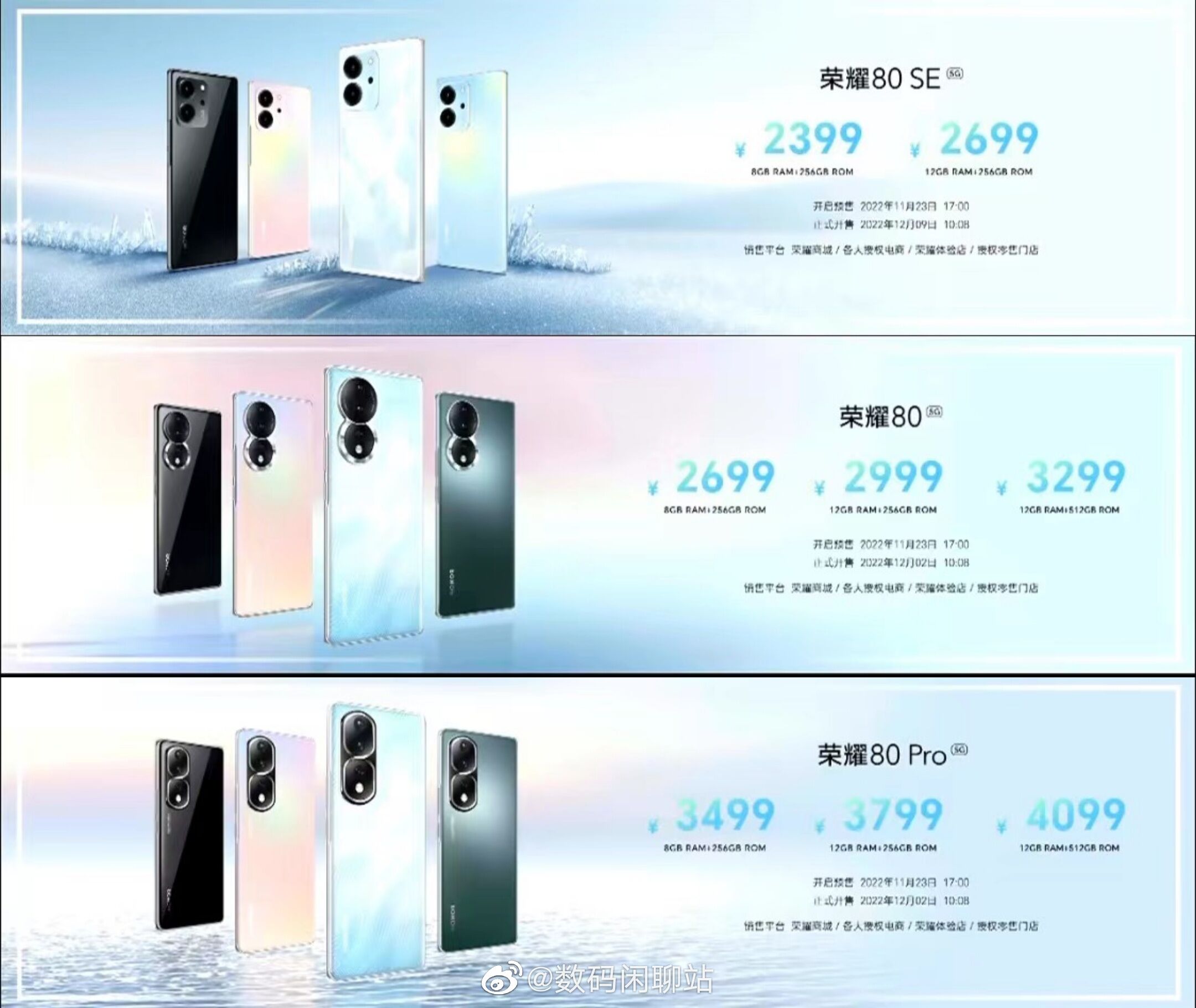 荣耀80SE :8+256GB版本2399,12+256GB版本2699;