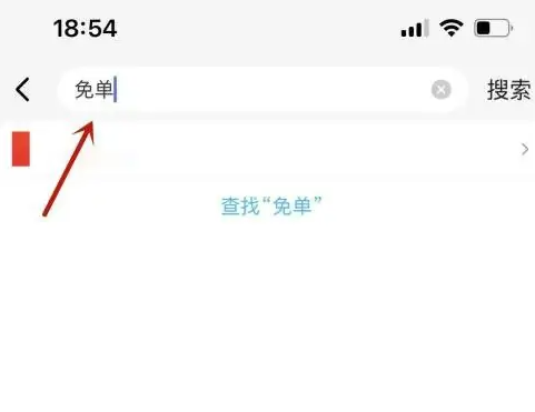 第一步、在饿了么搜索框输入“免单”后进行搜索打开。