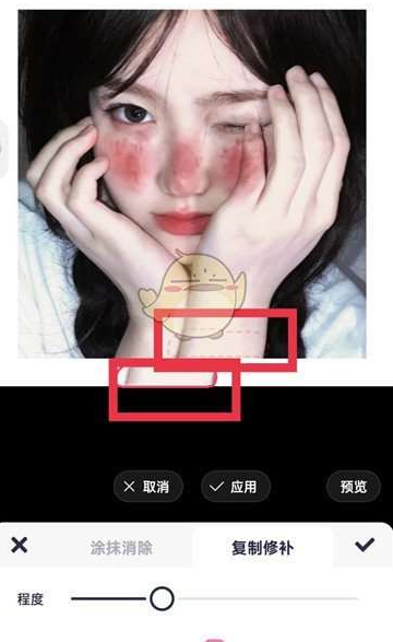 4.进入擦除笔页面点击【复制修复】,然后使用擦除区域工具在图片上涂抹想要修改的区域;