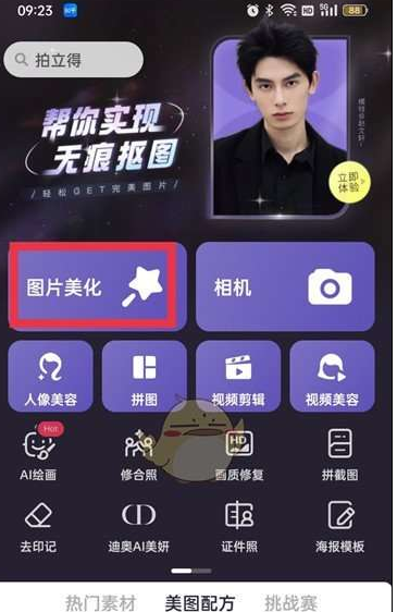 1.打开美图秀秀,点击【图片美化】;