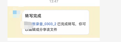 转换完毕之后,系统会有提示消息,点击提示消息,点击该段录音就可以找到对应的文字了。