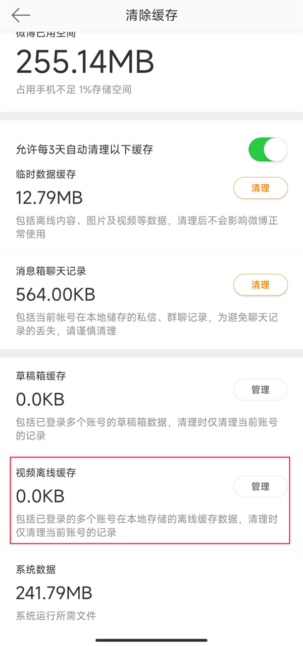 3、点击视频离线缓存右边的【管理】即可查看。