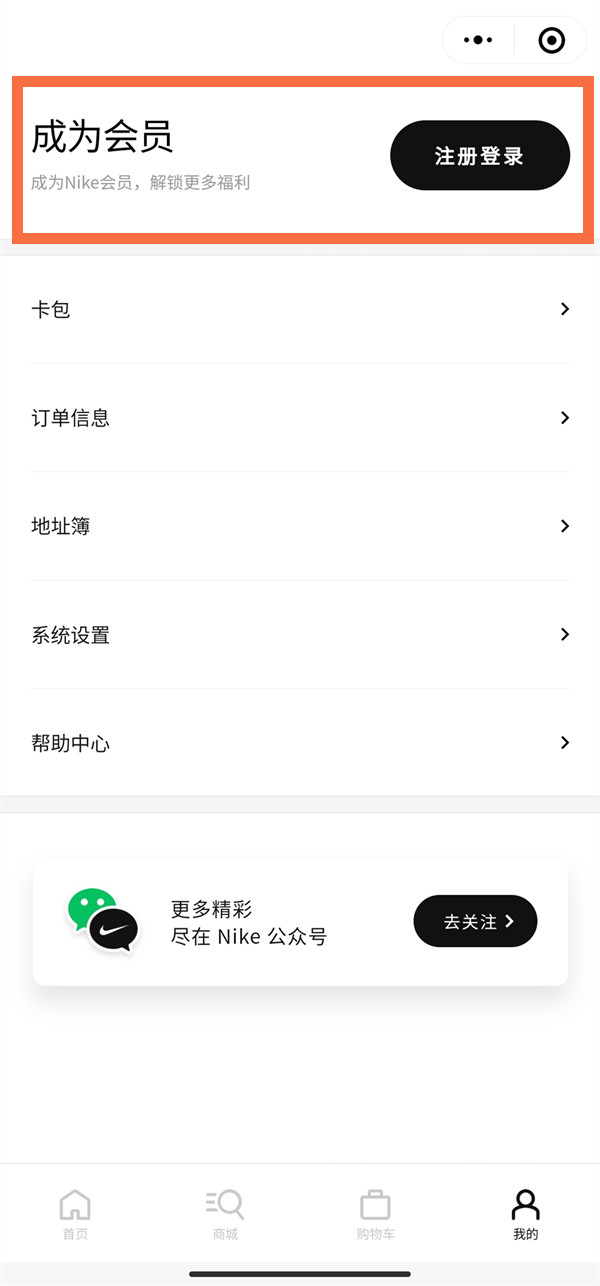 您可以通过Nike.com.cn,或下载Nike耐克App/SNKRS中国App,或在微信搜索Nike微信小程序加入成为 Nike 会员。以Nike微信小程序为例,具体操作步骤如下: