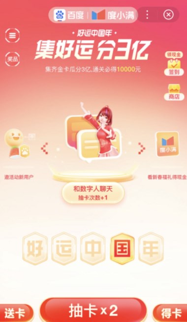 2023年兔年马上就到了,很多平台都推出了集卡刮分红包的活动,比如抖音、快手、支付宝、百度等。那么2023百度集卡入口在哪呢?小编整理了一些相关内容分享给大家哦!