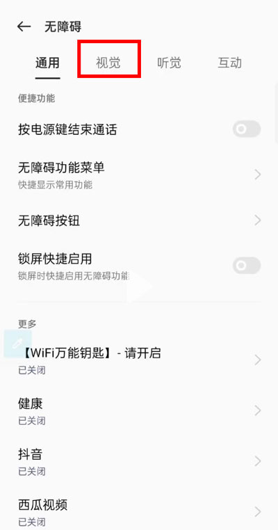 3、点击【视觉】,选择【talkback】并关闭即可。