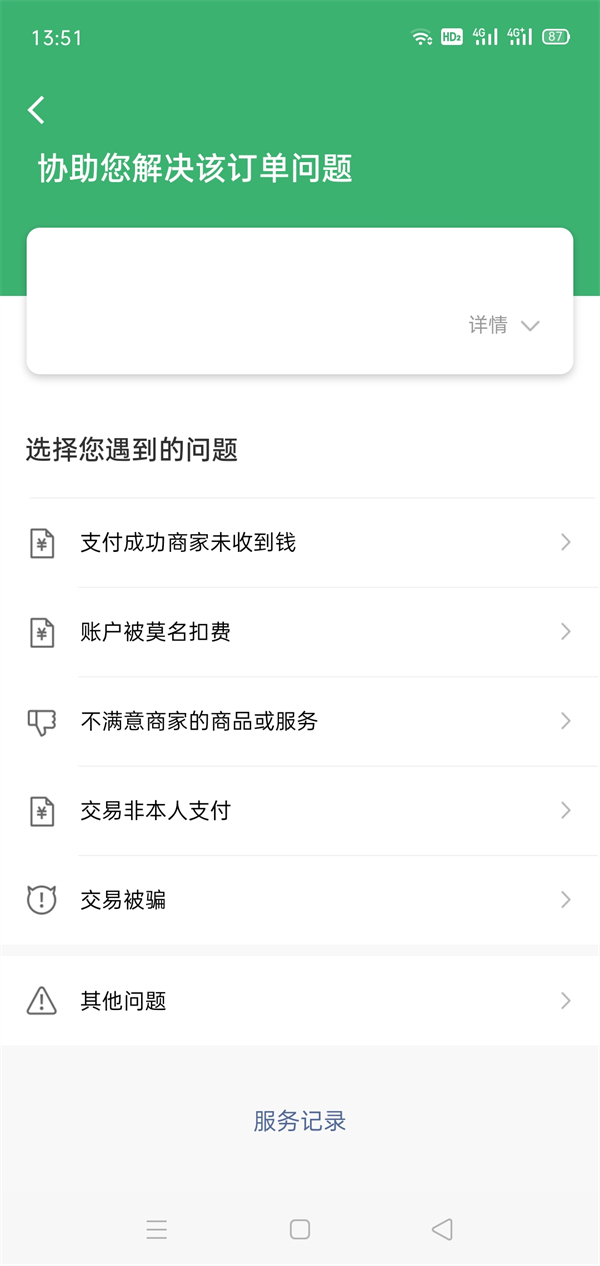 4、点击对订单有疑惑。