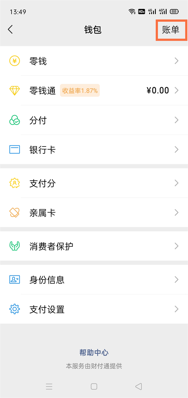 2、点击账单。