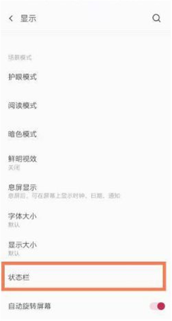 2、在显示界面中,下滑点击【状态栏】。