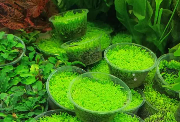 水草按照其在水族箱里的位置,底层的水草我们通常分为前景、中景、后景三种。前景草在水族箱中可以形成一片绿色的“草坪”,是水族箱造景必备的元素。而前景草中可以应用于底层前景的有很多种,它们形态各异,种植难度