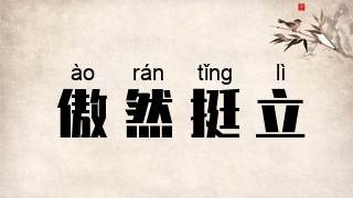 傲然:坚强不屈的样子。挺立:像山峰一样高高地耸立。形容坚强而不可动摇。