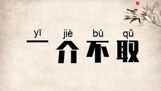 一介:一粒芥菜子,形容微小。一点儿小东西也不拿。形容廉洁、守法,不是自己应该得到的一点都不要。