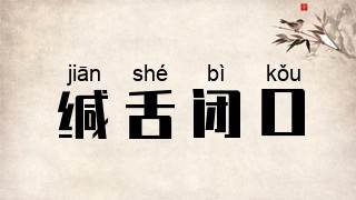 缄舌:闭着嘴。闭着嘴不说话
