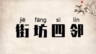 街坊:邻居。指住处邻近的人。同“街坊邻里”。