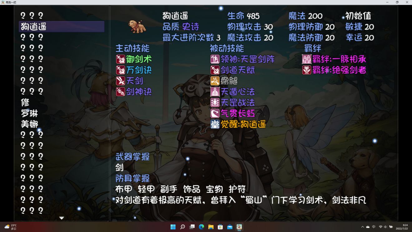 《再刷一把》狗逍遥怎么样?《再刷一把》初始角色解析之狗逍遥。狗逍遥是一位史诗品质的角色,是一只剑法非凡的狗,新手前期使用这个角色还是很不错的,下面来看看具体信息吧。1、名称:狗逍遥2、品质:史诗3、武。