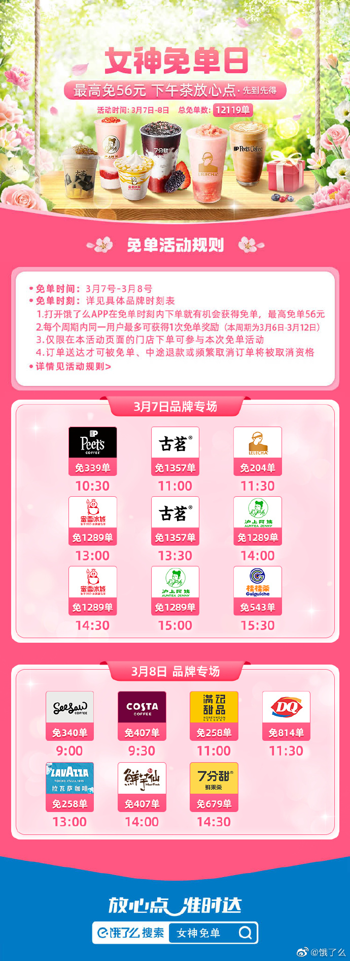 饿了么3.8免单时间分享