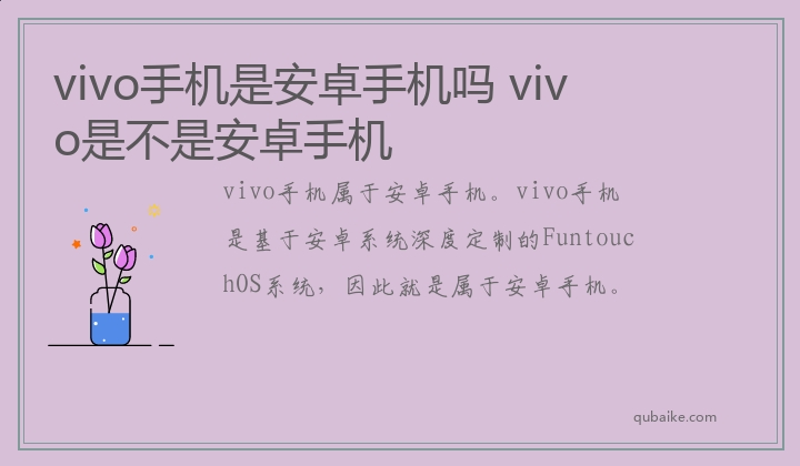 vivo手机属于安卓手机。vivo手机是基于安卓系统深度定制的FuntouchOS系统,因此就是属于安卓手机。