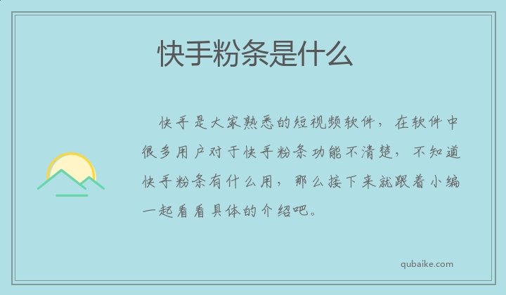 快手是大家熟悉的短视频软件,在软件中很多用户对于快手粉条功能不清楚,不知道快手粉条有什么用,那么接下来就跟着小编一起看看具体的介绍吧。