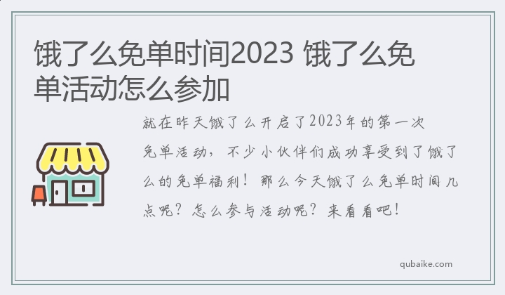 就在昨天饿了么开启了2023年的第一次免单活动,不少小伙伴们成功享受到了饿了么的免单福利!那么今天饿了么免单时间几点呢?怎么参与活动呢?来看看吧!