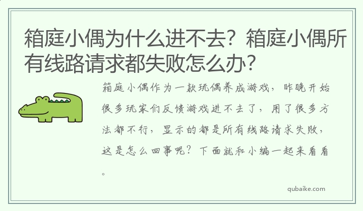 箱庭小偶为什么进不去?箱庭小偶所有线路请求都失败怎么办?