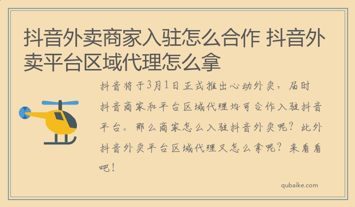抖音外卖商家入驻怎么合作 抖音外卖平台区域代理怎么拿