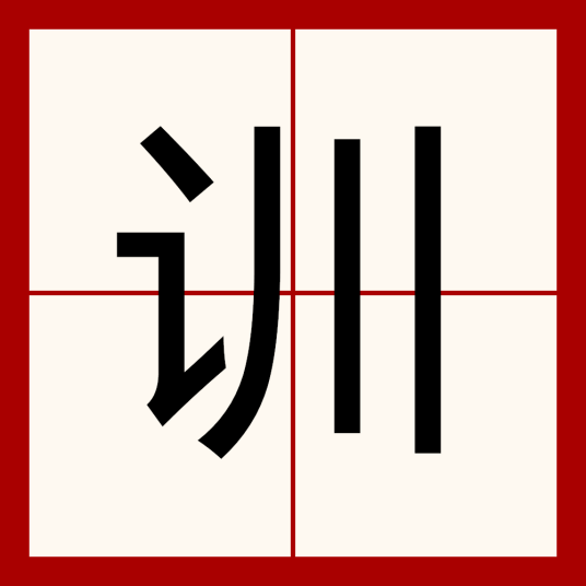 训:xùn ㄒㄩㄣˋ。偏旁“言”简化为“讠”。依据古人书法省笔简化。《说文解字》:“训,说敎也。说敎者、说释而教之。必顺其理。引伸之凡顺皆曰训。如五品不训、闻六律五声八音七始训以岀内五言是也。从言、川声