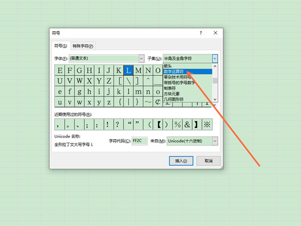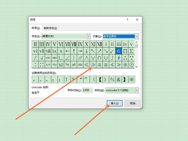 3、选择大于等于的符号,再点击插入即可。
