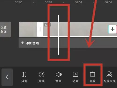 5、选择前面分割的片段视频并进行删除。