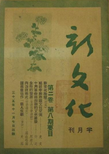 《新文化》1945年10月在上海创刊,半月刊,原由新文化半月刊社编辑、自2卷8期1946年起改由新文化社编辑,新文化社出版,1947年6月停刊,综合性文化刊物。