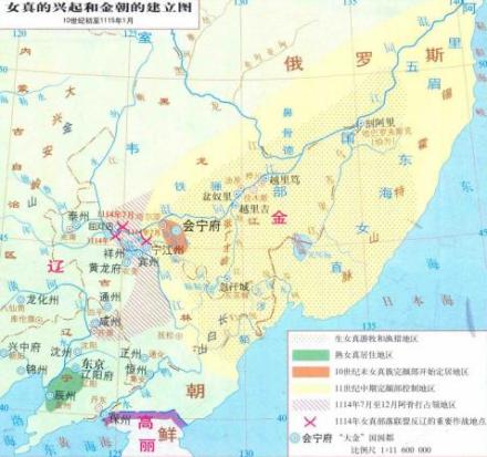 金朝是由东北地区的女真族所建立,以渔猎为生。汉文文献一致认为,女真是靺鞨部落中的一部,靺鞨中文明程度最高的粟末靺鞨在八世纪初建立了渤海国,靺鞨的另一部分是被称为“黑水靺鞨”的七个部落,居住在黑龙江的中下游地区。女真人的第一代祖先就源起于黑水靺鞨 。