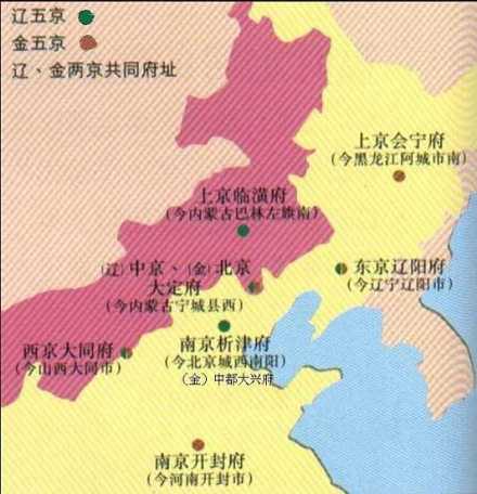 都城:中都(1153年之前在上京会宁府、1214年后在南京开封)