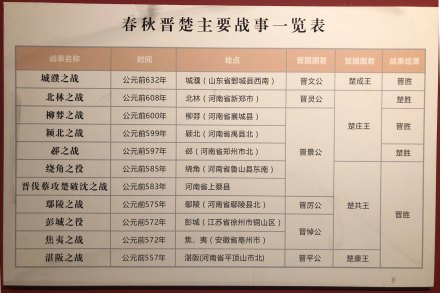 晋楚争霸,历史事件。截至公元前506年吴破楚入郢之战前,晋楚之间13场直接战争中,晋国11胜2败。