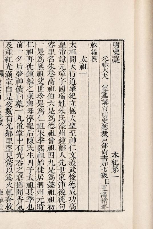 雍正元年(1723年),王鸿绪在原有的基础上进一步加入《纪》《表》《志》,又形成了清朝《明史》的第二个版本——王鸿绪《明史稿》。