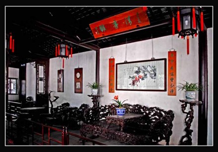 瑶华境界 瑶华境界,南宋绍兴初沧浪亭为抗金名将韩世忠时就有其名。明卢熊府志“梅之亭”曰“瑶华境界”。瑶华,本为传说中的仙花,色白似玉,花香,服食可致长寿,为仙界之人所食。此为借称,景色已经改变。此屋北对明道堂,南有丛竹掩映,原为园主会客之所。题额美丽脱俗,催发人们的浪漫情思,虽与景点不甚相合,但于质朴素雅的院落之外,仿佛又另辟仙苑幻境,倒也别有情味。 |