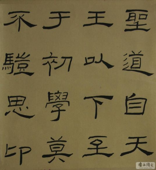 3、当古隶的挑笔、捺笔和汉隶的横笔有意识地组合在一个字中,且注重左右对称分布时,这就标志着八分书的形成。八分书端庄规范,每一个字都是一个独立的自足的系统。八分书重心平稳,不需要靠上下字来调节。八分书的挑捺较汉隶更为夸张,提按明显;八分书的横画从汉隶发展而来,但较汉隶更为丰富,有起笔、运笔、收笔三个过程,所谓“一波三折”(“蚕头雁尾”为其典型特征)。八分书的横画“中虚”,横画经常向上方凸起,中间高两头低,蚕头和雁尾左右对称。八分书的这些特征在尹湾名谒木牍中还未充分表现出现,在东汉诸碑中表现得尤为明显。八分书一经形成,深受人们喜爱,被定为正体式样。