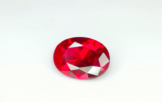 红宝石属于刚玉族矿物,三方晶系。因其成分中含铬而呈红色,含量越高颜色越鲜艳。血红色的红宝石最受人们珍爱,俗称“鸽血红”。红宝石与祖母绿,蓝宝石,碧玺等都属于有色宝石属。红宝石质地坚硬,硬度仅在金刚石之下。