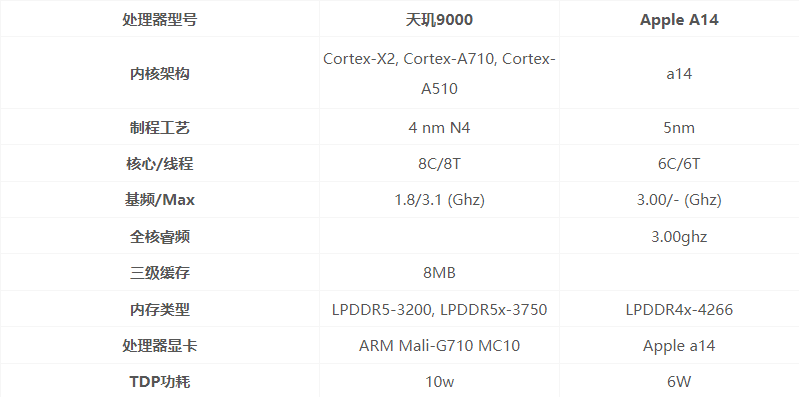 天玑9000和a14参数对比: