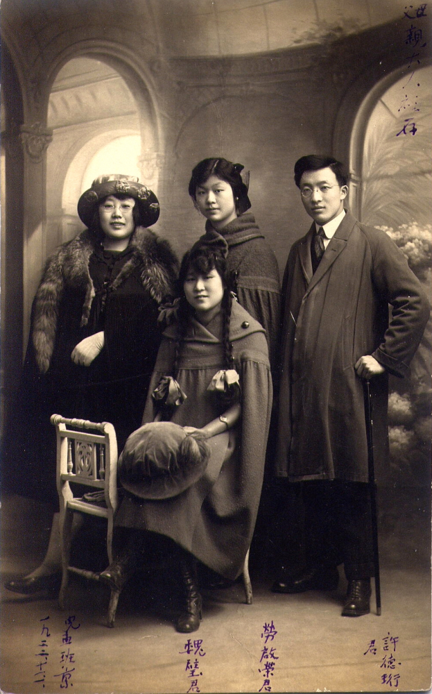 图为1922年劳君展与旅法勤工俭学好友摄于法国,右起:许德珩、劳君展、魏璧、吴孟班。