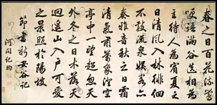 清初书法,由于康熙、乾隆等人的倡导赵孟頫、董其昌书法,当代大部分书法家也是受这氛围所影响,纪昀也跟随着当代的潮流,也在当代占有一席之地,其书法书写 流利,有着圆融的特点,有着雍容华贵气质,书法大小相兼,收放结合,疏密得体,苍劲多姿,可以说是实用性和艺术性的结合。纪昀在文化上,很重视文学作品的艺术效果,风格主张质朴简淡,自然妙远,内容上主张不夹杂私怨,不乖于风教。除开其阶级局限外,其在文风、文德上的主张,仍不失其借鉴价值。乾隆皇帝:朕以汝文学优长,故使领四库书,实不过以倡优蓄之,尔何妄谈国事。(《清代外史》)