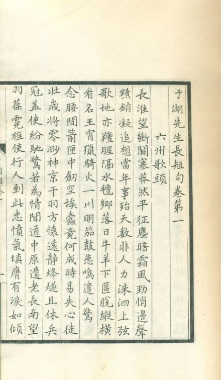 词 | 《六州歌头·长淮望断》《水调歌头· 闻采石矶战胜》《念奴娇·过洞庭》《浣溪沙·霜日明霄水蘸空》《西江月·问讯湖边春色》《西江月·阻风山峰下》《蝶恋花·怀于湖》《卜算子·雪月最相宜》《念奴娇》《多丽》《二郎神》《天仙子》《木兰花慢·紫箫吹散后》《水龙吟》《水龙吟·过浯溪》《水调歌头·泛湘江》《水调歌头·和庞佑父》《水调歌头·金山观月》 | |||