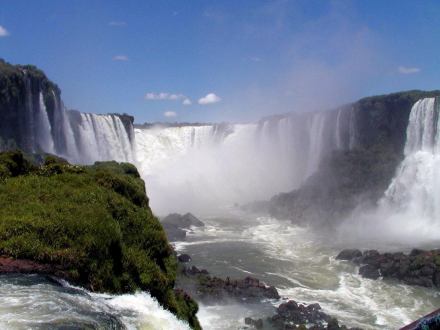 南美洲的伊瓜苏瀑布是世界五大瀑布之一,该瀑布位于阿根廷和巴西两国边境。1934年,阿根廷在伊瓜苏瀑布区建立了670平方公里的国家公园。1982年,伊瓜苏瀑布被联合国教科文组织列为世界自然遗产。