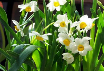 水仙茎叶清秀,花香宜人可用于装点书房、客厅,格外生机盎然。水仙茎叶多汁有小毒,不可误食,牲畜误食会导致痉挛。鳞茎捣烂外敷,可以治疗疮痈肿。 凌波玉立,馥郁芳香。象征翠袖黄冠白玉英的身材之美。