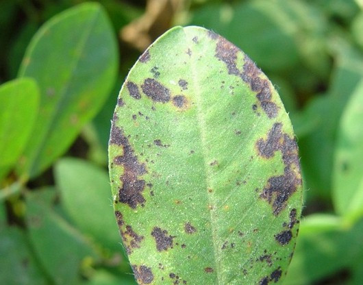 黑斑病由许多种真菌所引致。侵染发生在潮湿季节,出现圆形或不规则形黑色叶斑,有时发生在叶柄、茎和花部。