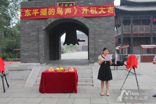 7月18日,由东平县景区管委自主拍摄的泰安市首部抗战题材微电影《东平湖的鸟声》在水浒影视城开机拍摄,全体主创人员参加了开机仪式。