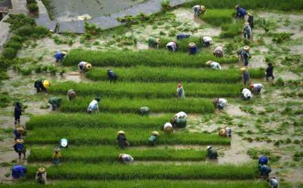 农事活动:作物栽培(南方)、收获麦子(北方)